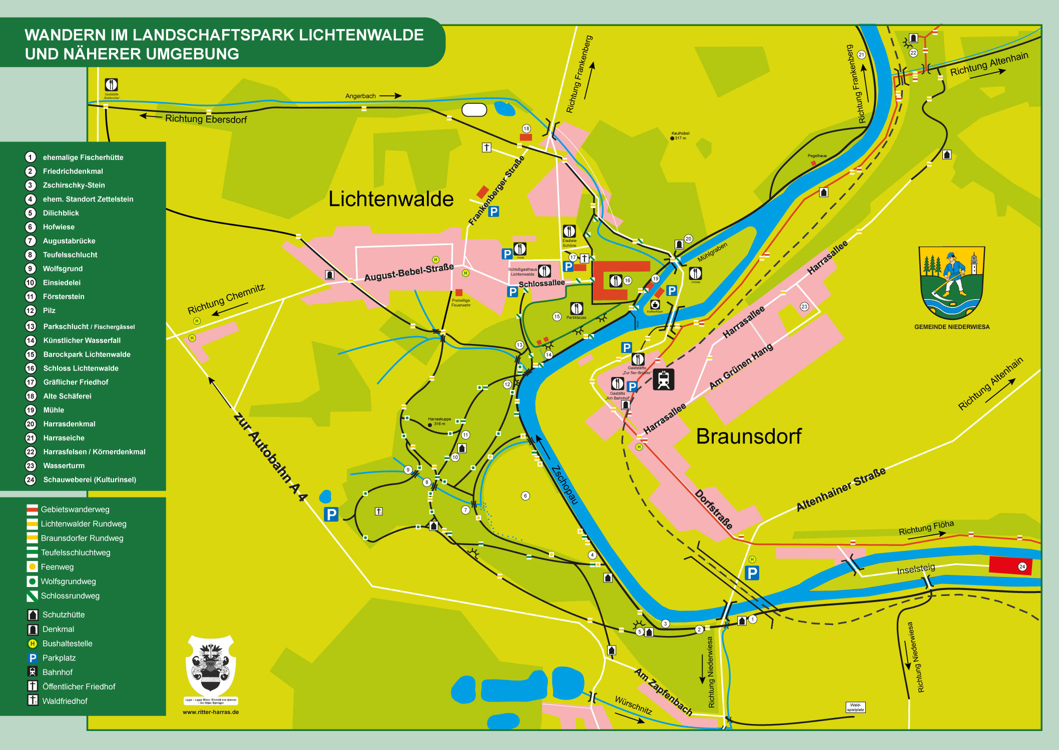 Für Naturfreunde und Entdecker gibt es eine spezielle Wanderkarte für den Landschaftspark Lichtenwalde/Braunsdorf, die bei der Orientierung hilft und viele Tourenvorschläge enthält.